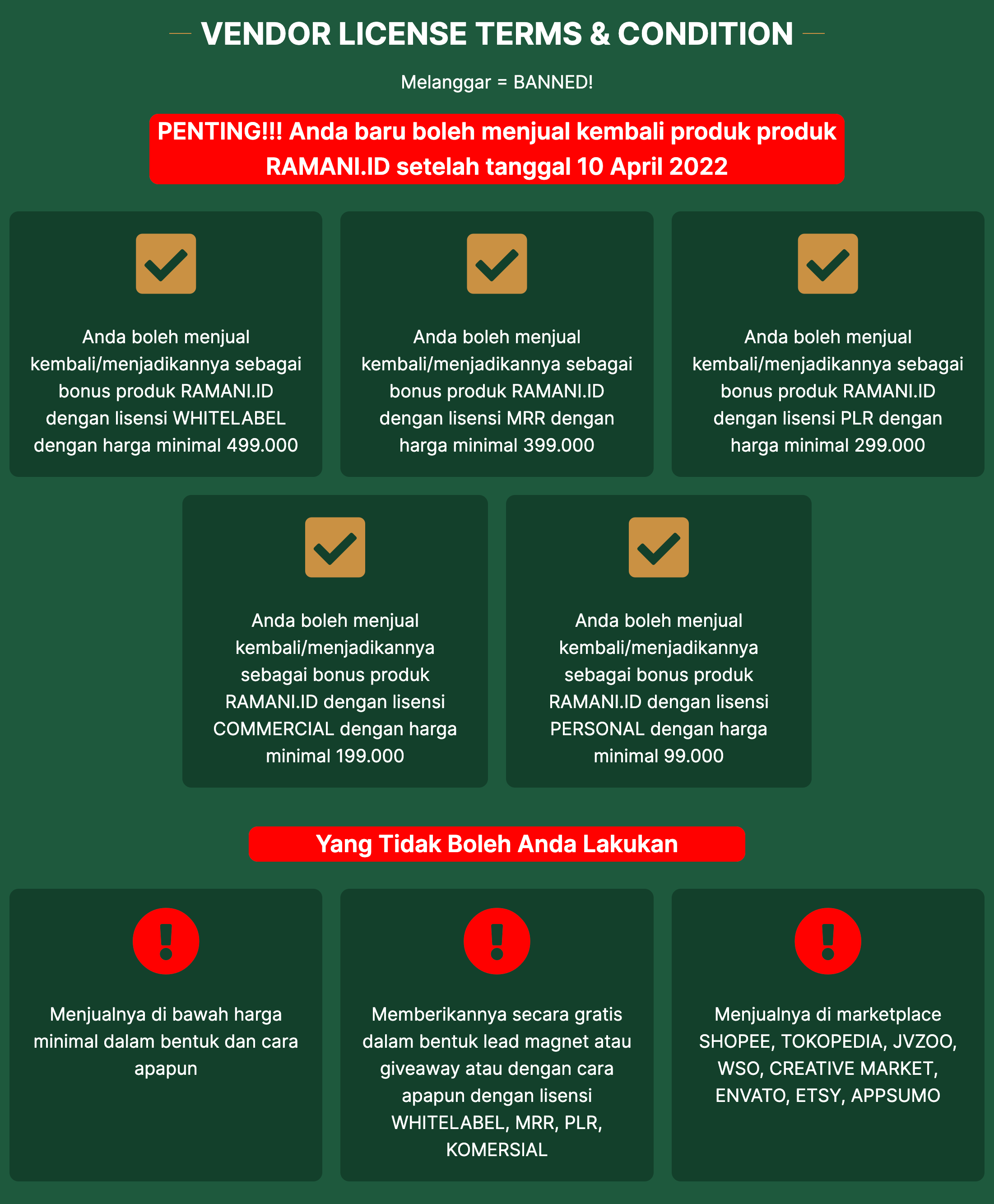DAN, RAMANI.ID 2.0 akan memudahkan Anda untuk menjual kembali template-templatenya dengan berbagai fitur berikut ini...