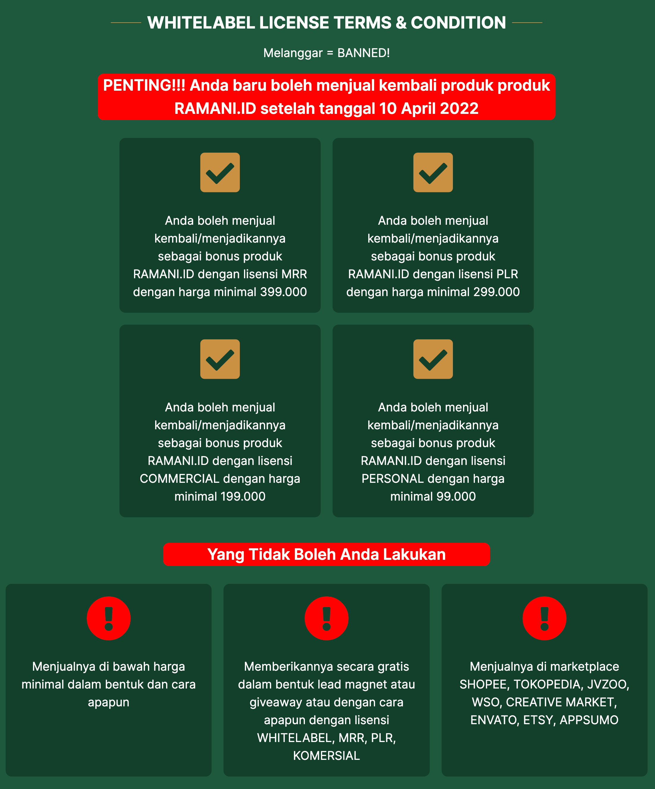 MAAF! Penjualan RAMANI.ID sudah ditutup